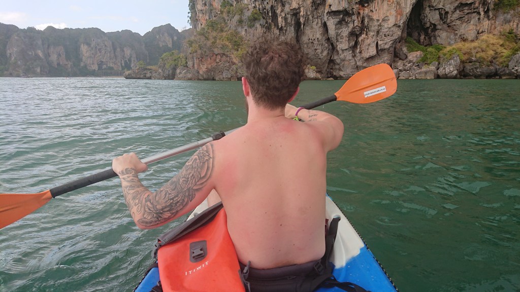 Unfortunately for us, the weather decided to turn. We’d been in Thailand for a week without the merest drop of precipitation, yet now we were out on the sea in a canoe and the heavens decided to open. When it rains in Thailand, it really rains. Thankfully we made it back to shore and there was no thunder.