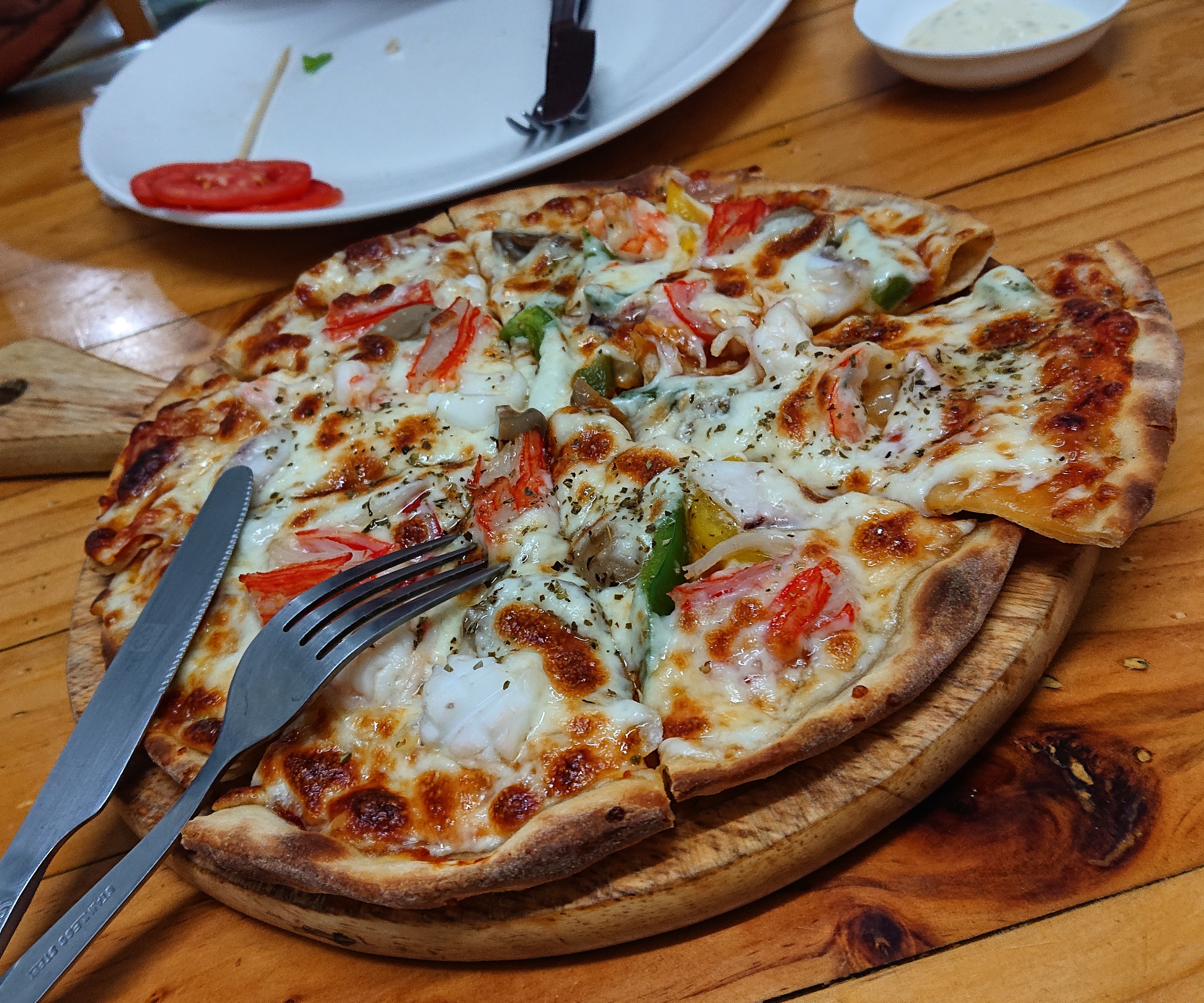 At the Black Sheep I ordered a seafood pizza.