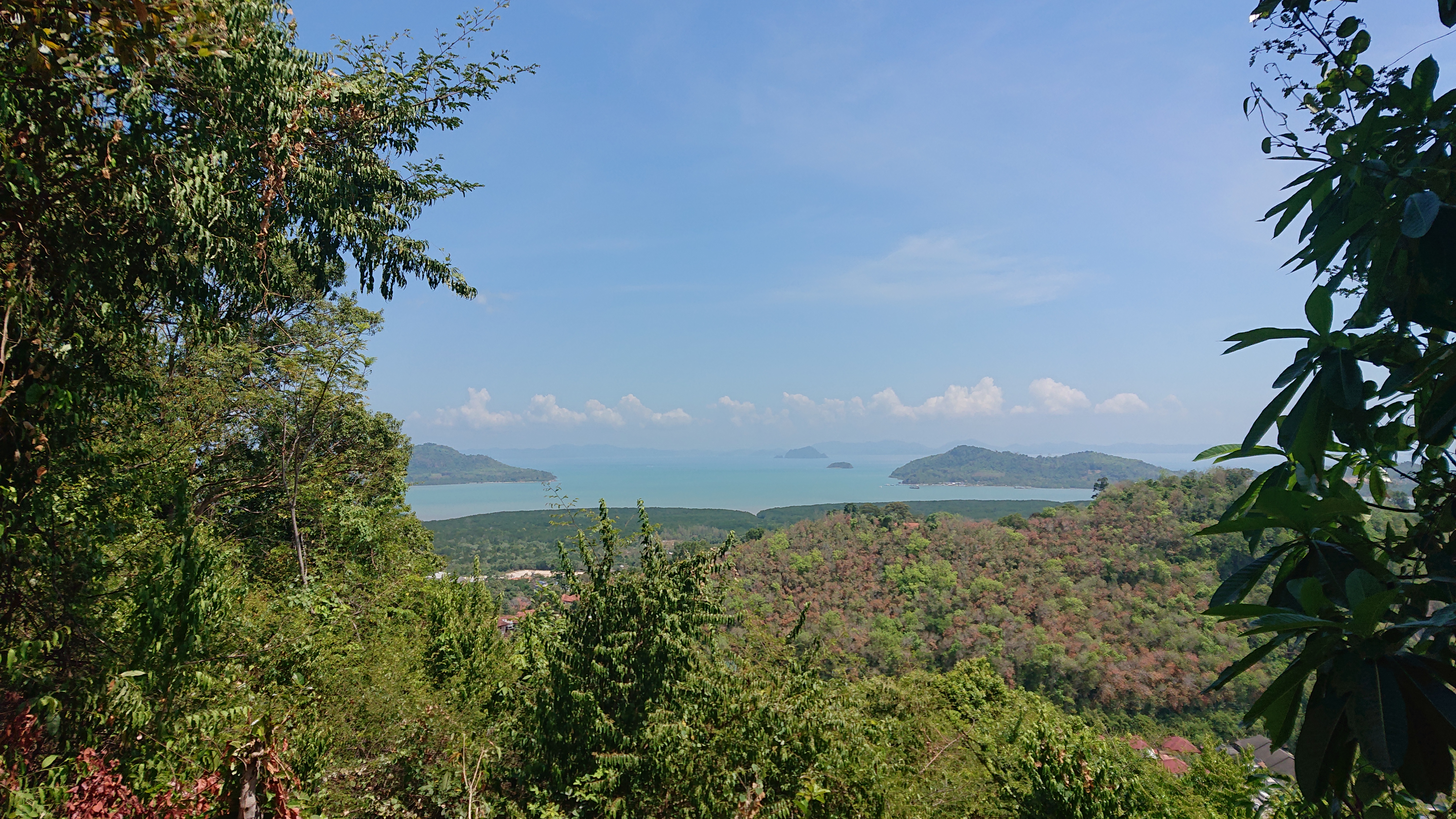 We returned to the road up Monkey Hill. There were markings on the path that told us it was about 3km to the top. In this heat, that was a tall order. But at points, it offered some good views.