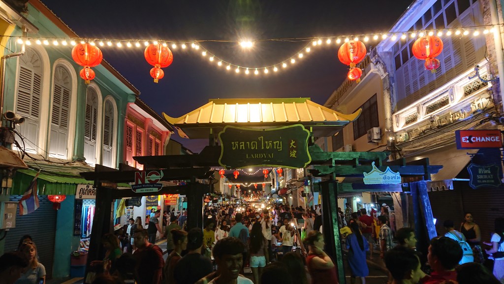 The street was really long, full of people and full of bargains. There were loads of musicians too. Definitely a must if you’re in Phuket Old Town. Andy bought a bandanna.