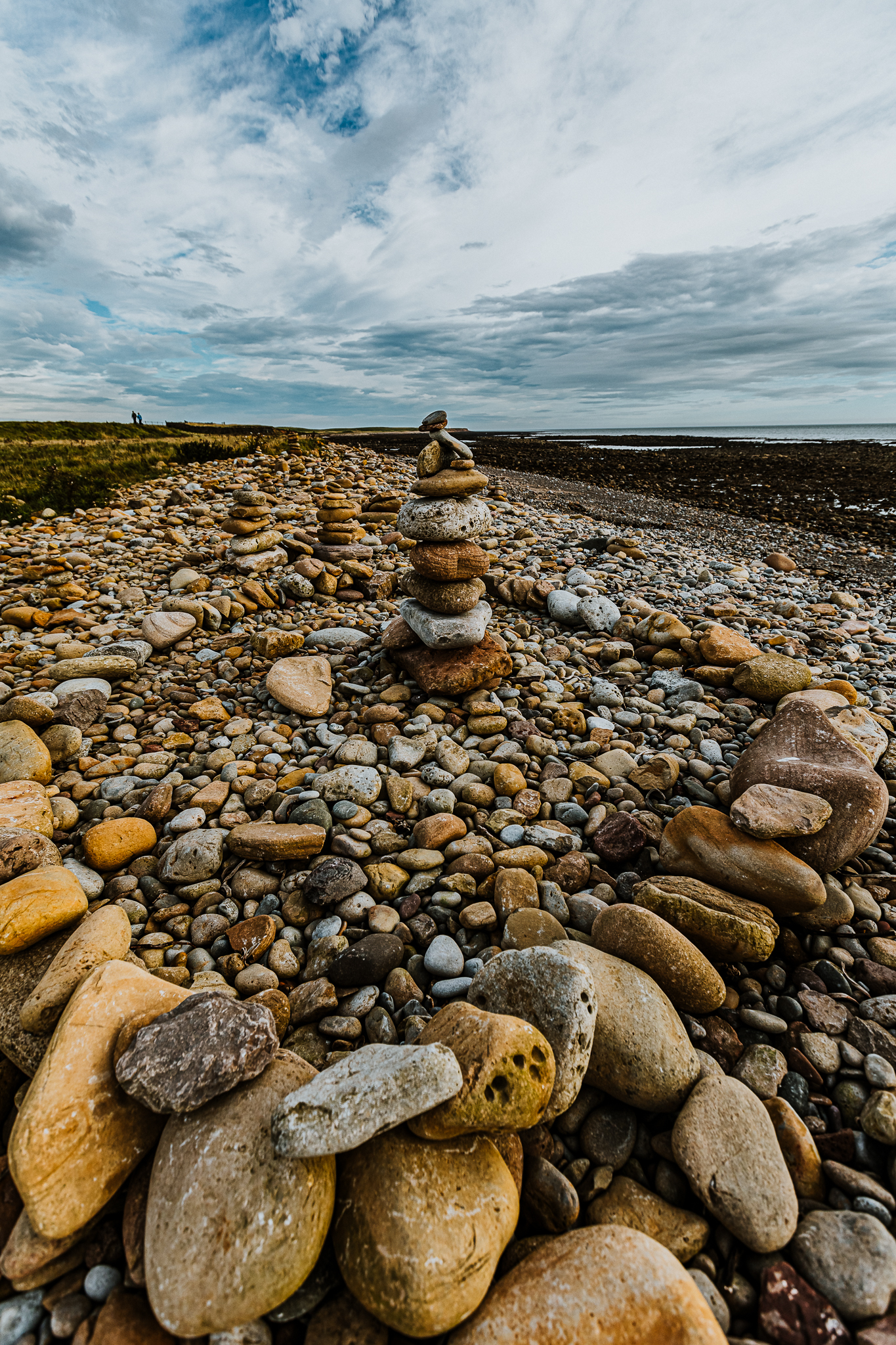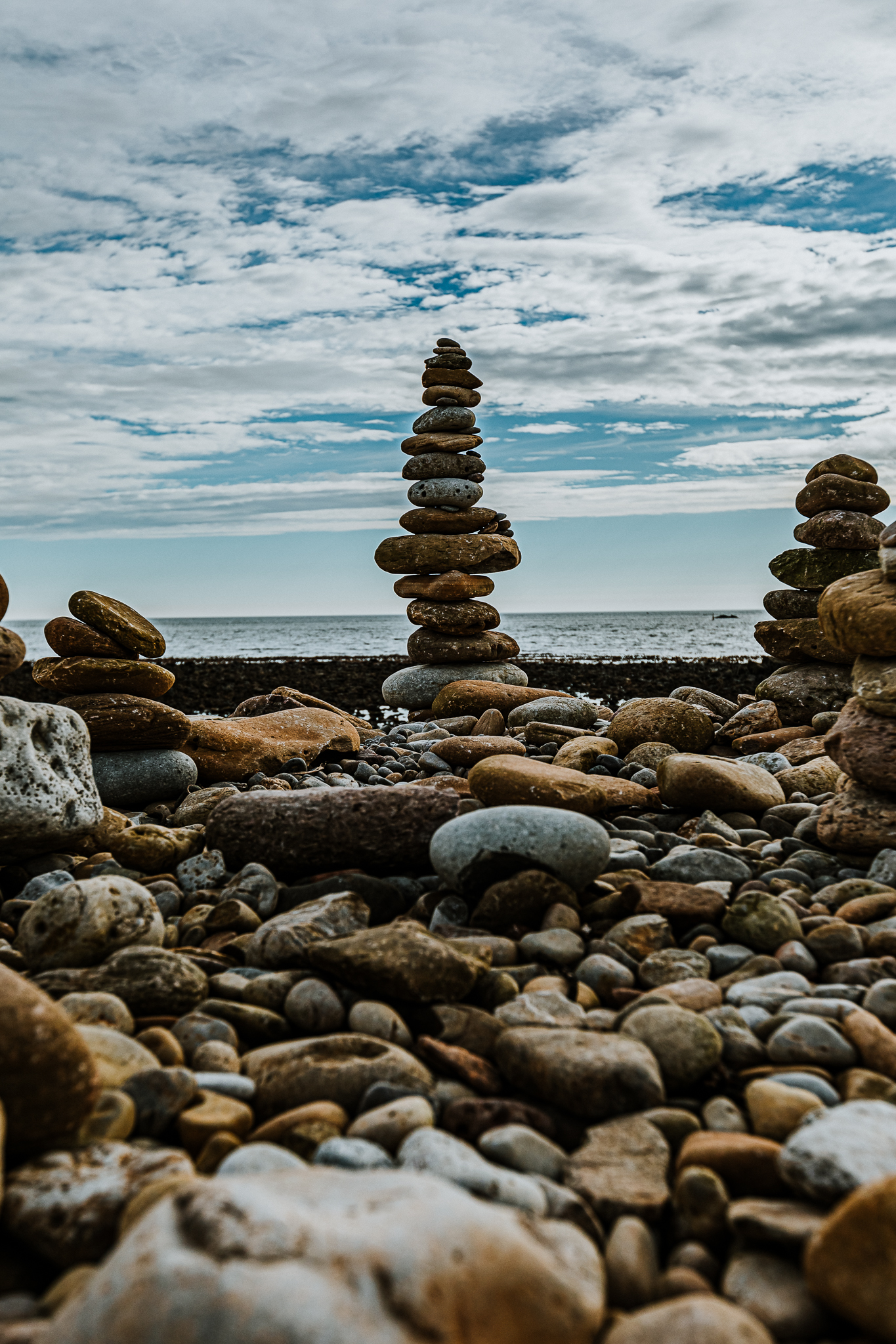 The beach here is pebbled, so obviously, people make these cairns. I always have a strong urge to knock them all down. I suppose that’s disrespectful though…