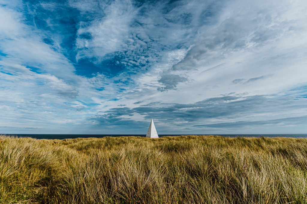 In the distance we spied a strange white pyramid. We headed over to the Emmanuel Head Beacon.