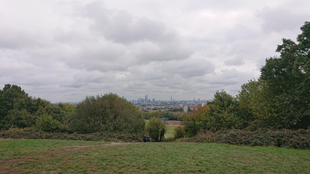 Refilled, we walked back into Hampstead Heath. Just over a mile from the Spaniard’s Inn is Parliament Hill.