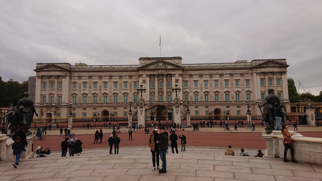We caught the Tube at Hampstead station and rode into central London. The plan had been to alight at Marble Arch and walk through Hyde Park. However, I was starting to get hungry and my Hampstead Heath detour earlier in the day had thrown Claire’s itinerary back by an hour. Instead, we got off at Hyde Park Corner and walked through Green Park towards Buckingham Palace.