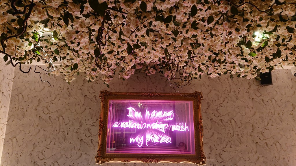 We walked through a busy Soho to L’Antica Pizzeria that featured a very relatable piece of decoration.