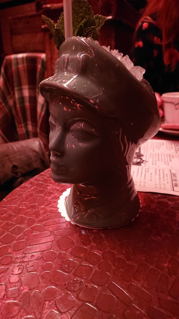 Cocktails on offer include the Winston Churchill, the Judy Garland and the Ginger Rogers. I got myself a Vera Lynn that came in a hollowed bust of her head.