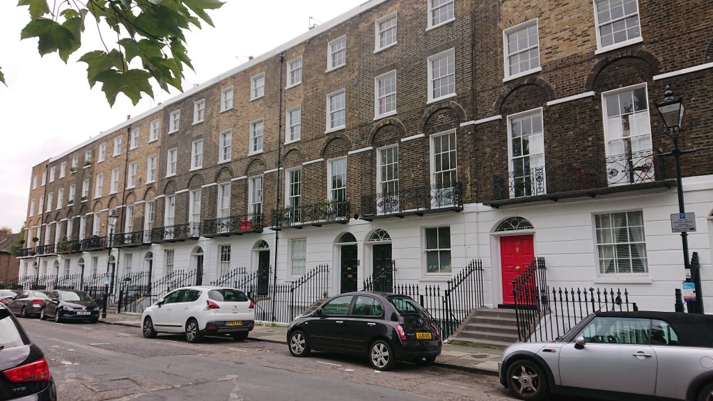 It was a short detour, only 18 minutes from Kings Cross (or 5 minutes from the Angel Underground station). This is Claremont Square, the filming location of Grimmauld Place. Number Twelve Grimmauld Place is somehere in the middle.