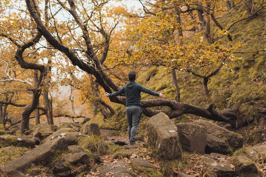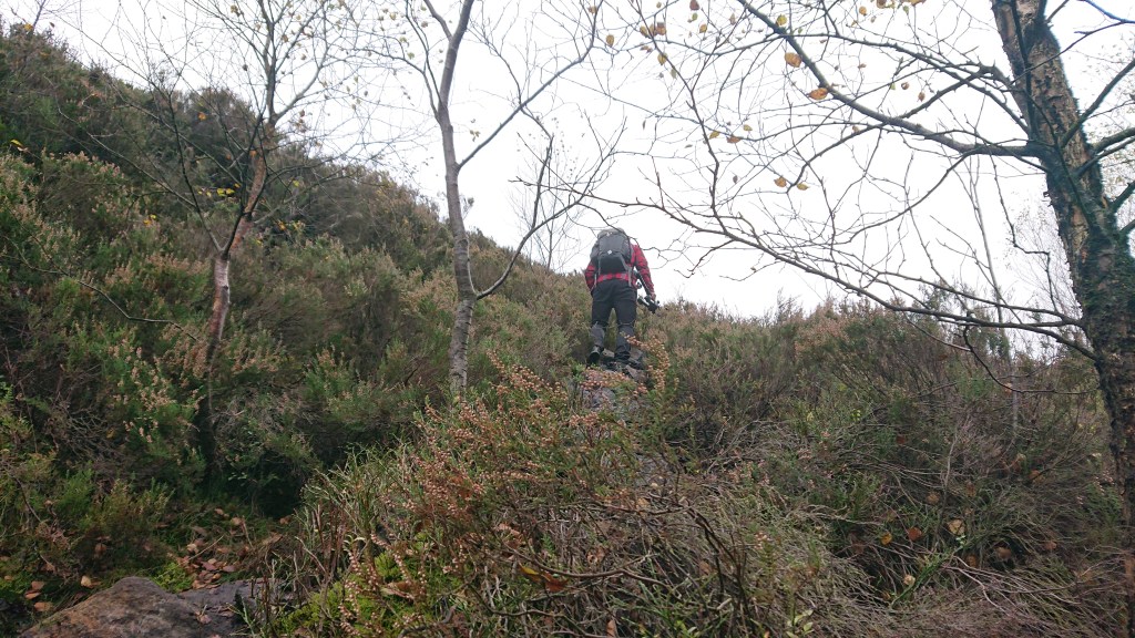 We descended back into woodland. This side of the moor felt even more untouched, wild. The paths were overgrown and slippy.