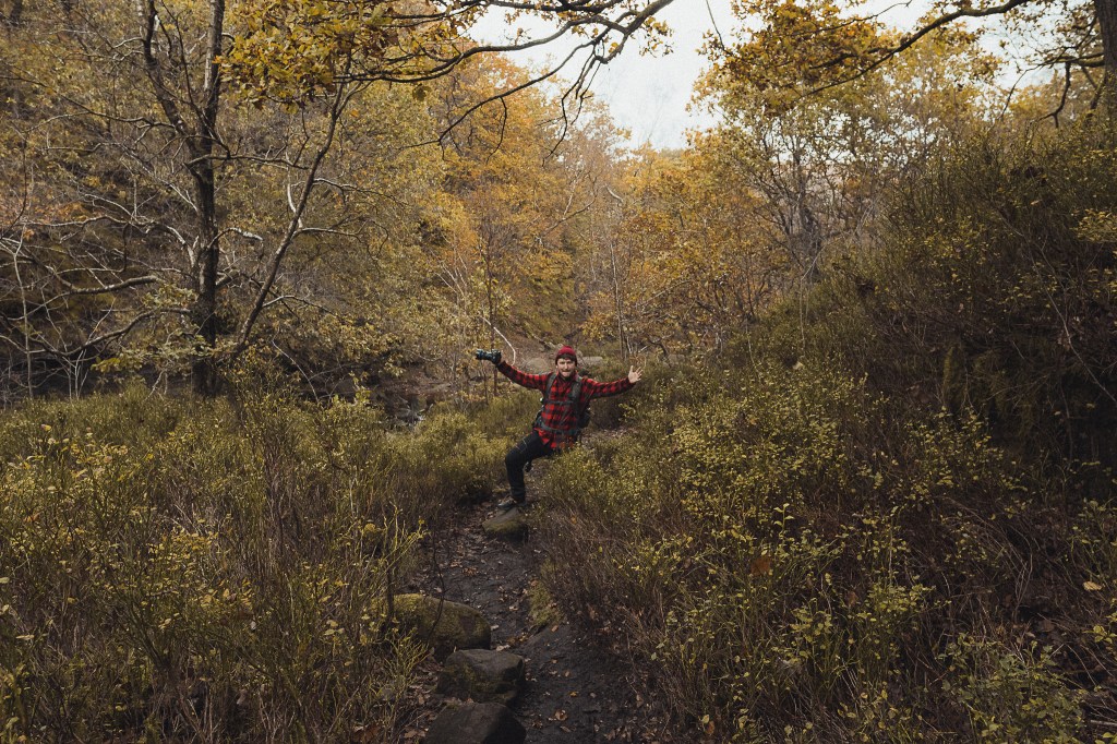 It’s a simple walk but it requires you to criss-cross the stream. The route does get a bit muddy and scrambly but it should only take you 10-15 minutes to get to the waterfall. Obviously, we are The Walking And Talking Society and we don’t do things simply. Our trips must include frequent stops for photo shoots.