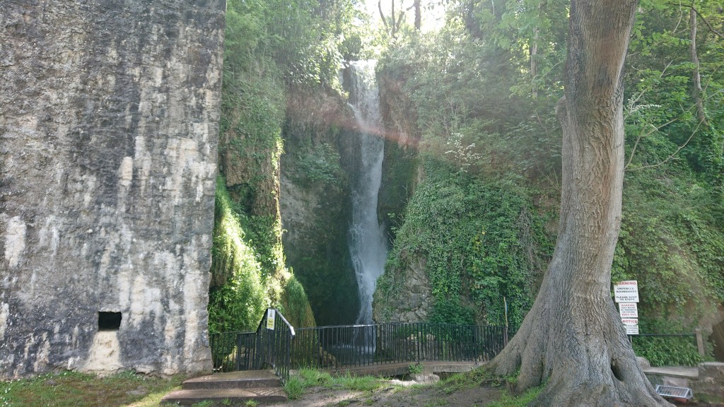 A short 15 minute drive away is the town of Dyserth. It’s not on the coast, but it does feature a good ol’ waterfall. There is a car park next to the falls but it’s tiny, and I ended up having to reverse out over the narrow bridge and back into the main road. There are a few other places to park and I chose a nearby housing estate. I bet the locals are fed up of the likes of me.