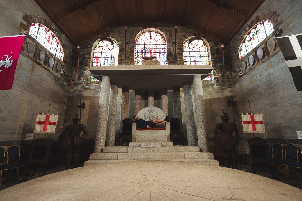 The Cornish guy behind the desk (btw, his was the first Cornish accent I’d heard all holiday – are they dying out or something?) told us we were extremely lucky to have the place entirely to ourselves. Usually the Halls are swarming with Arthurian enthusiasts – but today we could make it our own private photo studio.