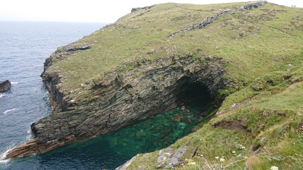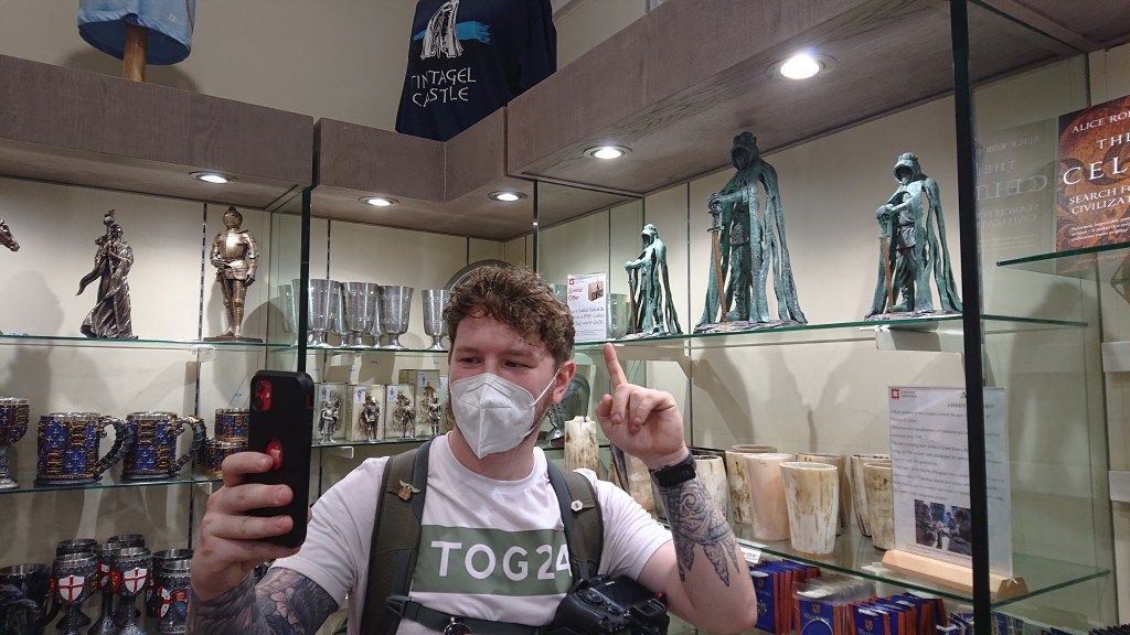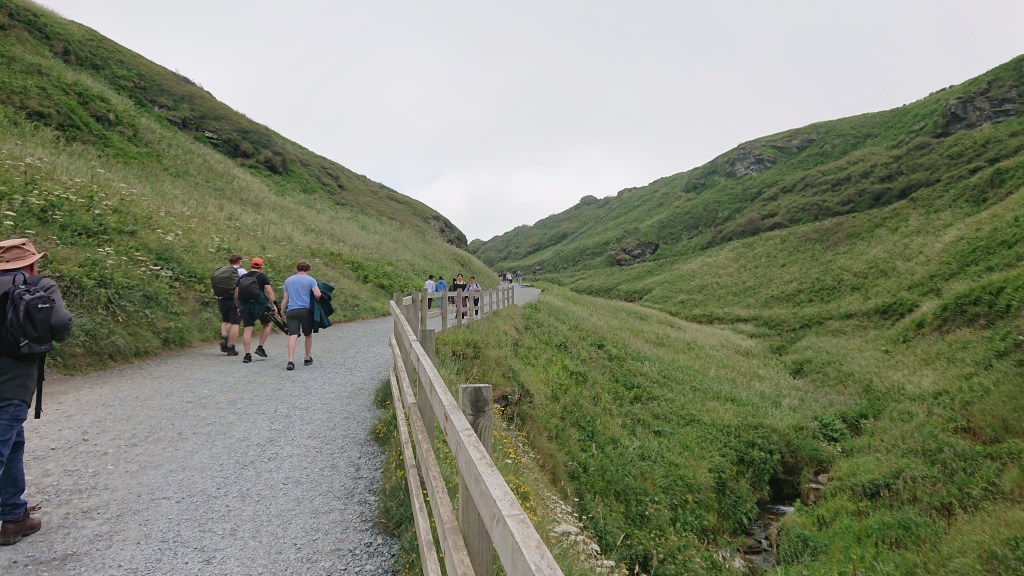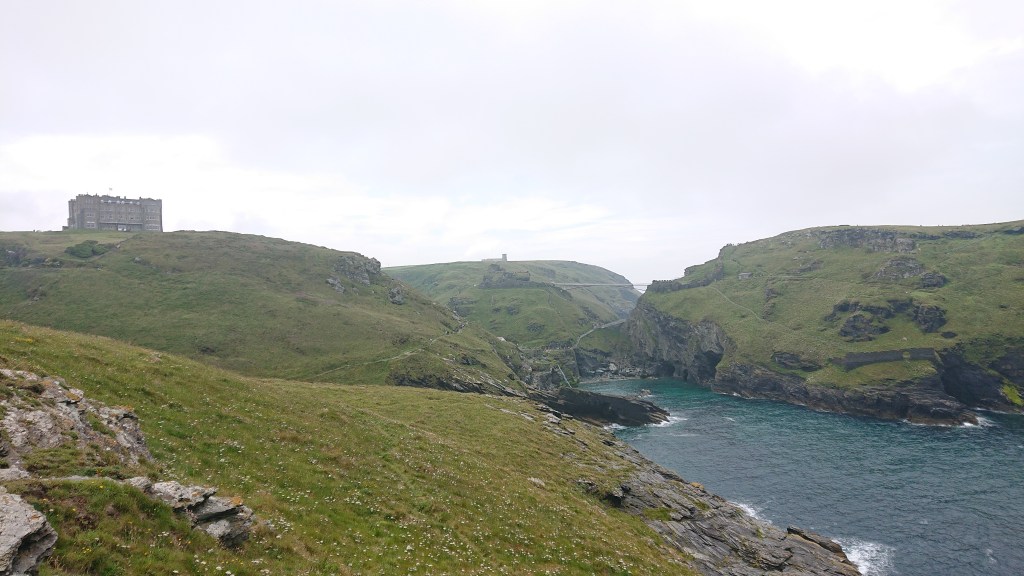 After breakfast we headed over to the entrance to Tintagel Castle, where the mythical King Arthur was conceived. According to legend, Arthur’s father King Uther Pendragon was disguised by Merlin’s magic to look like Gorlois, Duke of Cornwall, so that he could enter Tintagel and impregnate the Duke’s wife, Igraine. Nowadays we would know this as “rape”.