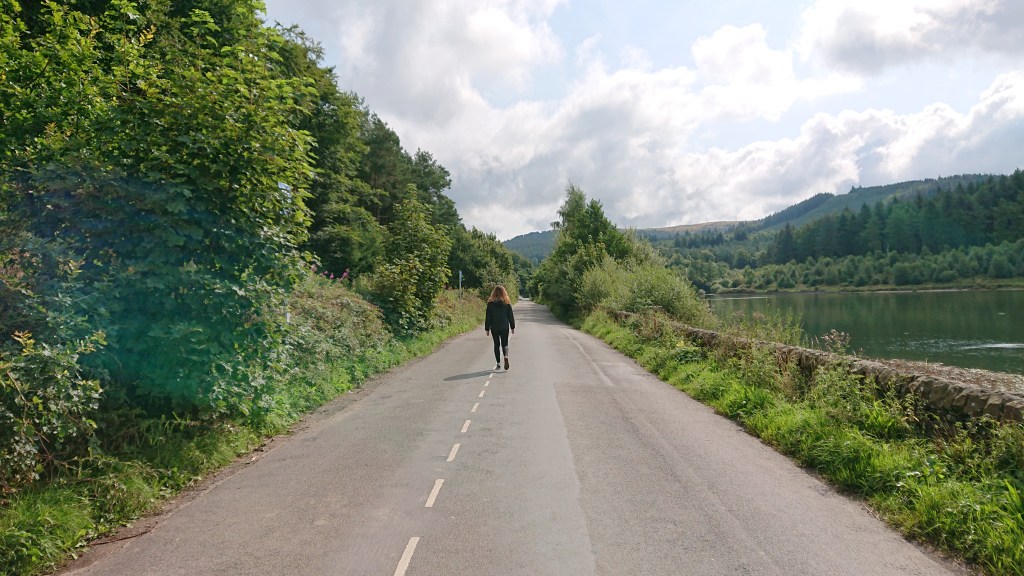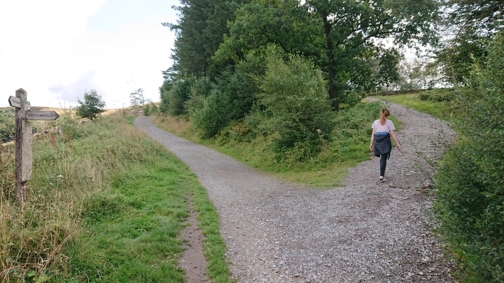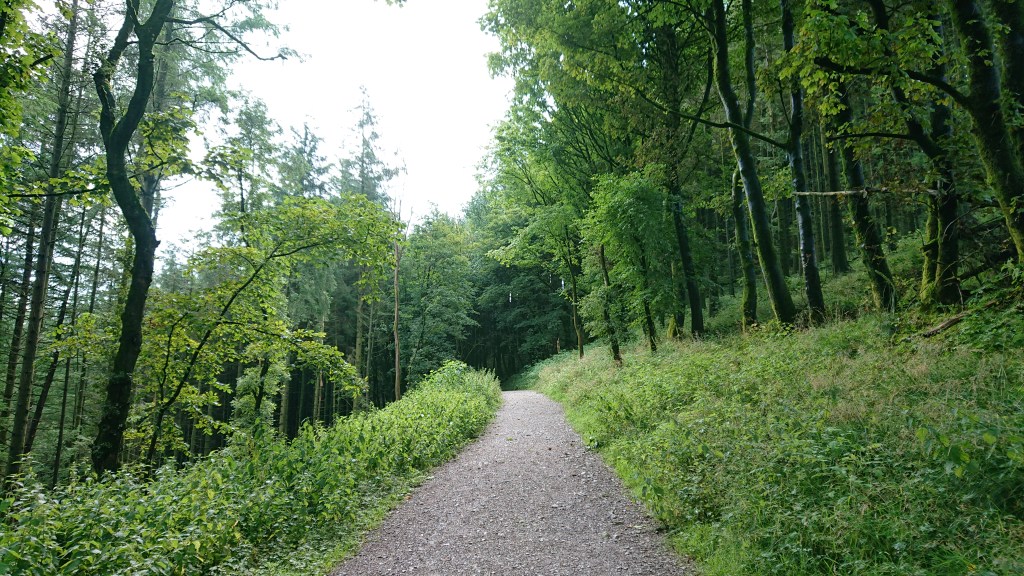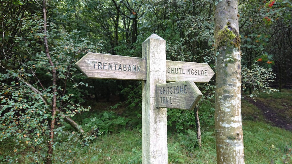From beside the reservoir, you follow the road up to Trentabank car park and turn right into the forest. It was here that a group of three gals, a guy and a middle aged couple joined the path in front of us and held us up.