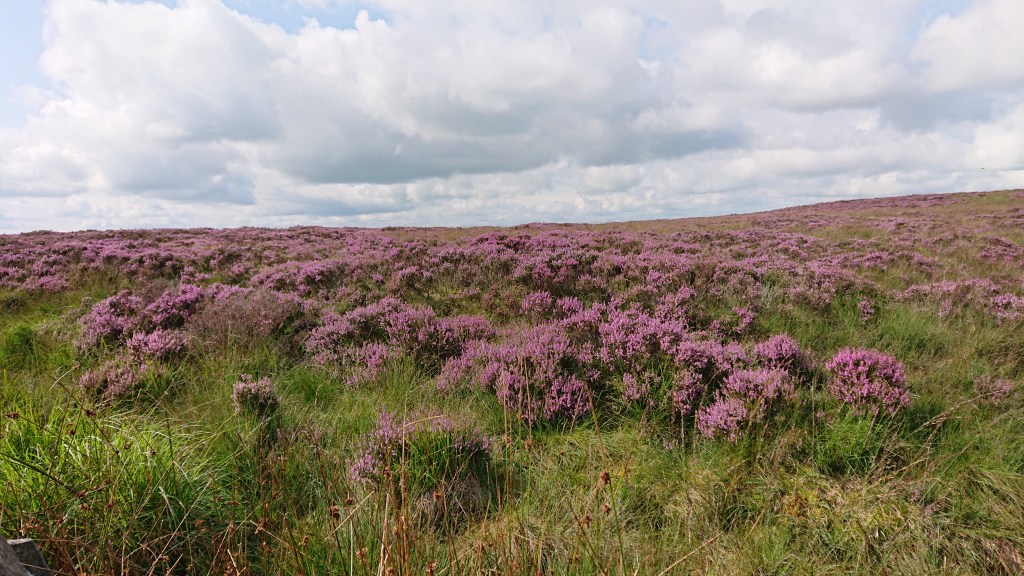 Aimee fell into that classic trap for first time hikers, where you get to the top of one hill only to see you still have a climb to go. She groaned at the sight of the peak. I ogled the heather for it was looking very purple.