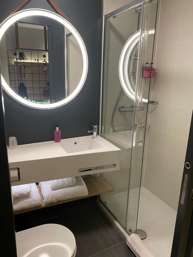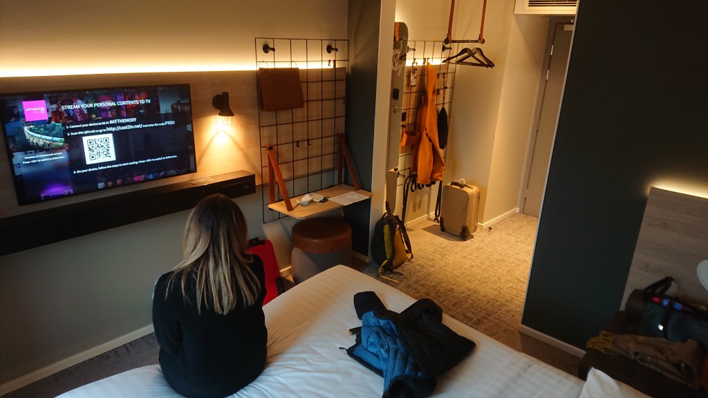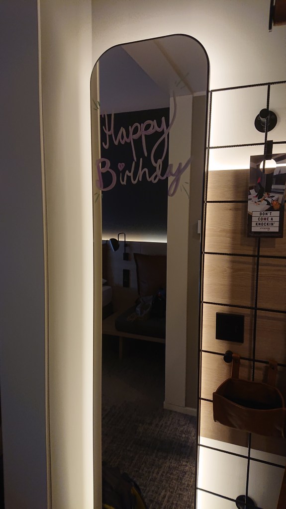 Moxy Edinburgh Fountainbridge is about a 20 minute walk from the centre and the Castle. There’s a bar on the ground floor, the staff are lovely and the room was nicely equipped, with air-con, a great shower and noise-cancelling windows. They even left me a message on the mirror.