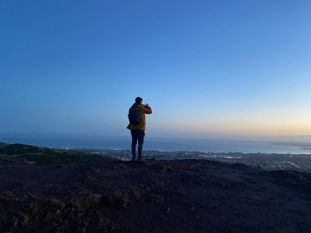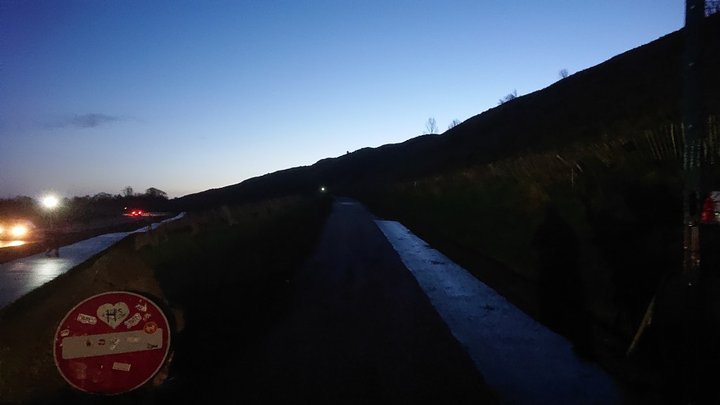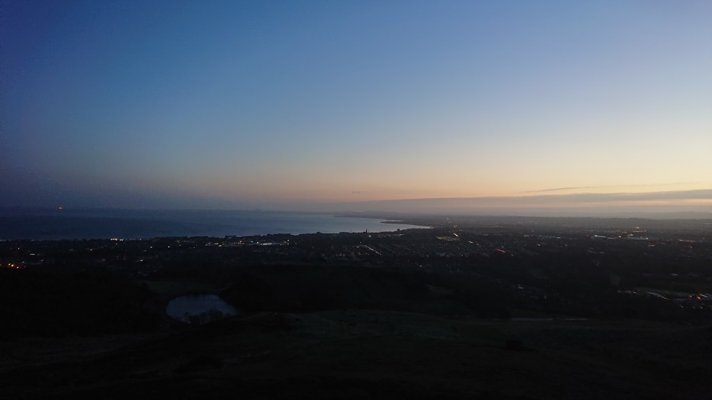 We entered Holyrood Park and left the bustle of city life behind. This route to the summit (an elevation of 251m) is the most gentle, and the path is easy to traverse but for a few rough rocky parts. The darkness obviously hindered us, and we had to be extra careful in placing our steps.