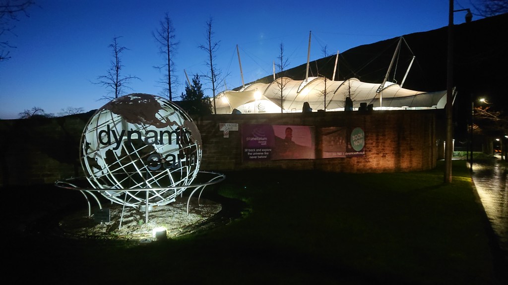 We set off at 7am and walked through the quiet Scottish streets for 30 minutes before reaching the Dynamic Earth, which is overlooked by the hulking dark mass of Arthur’s Seat.