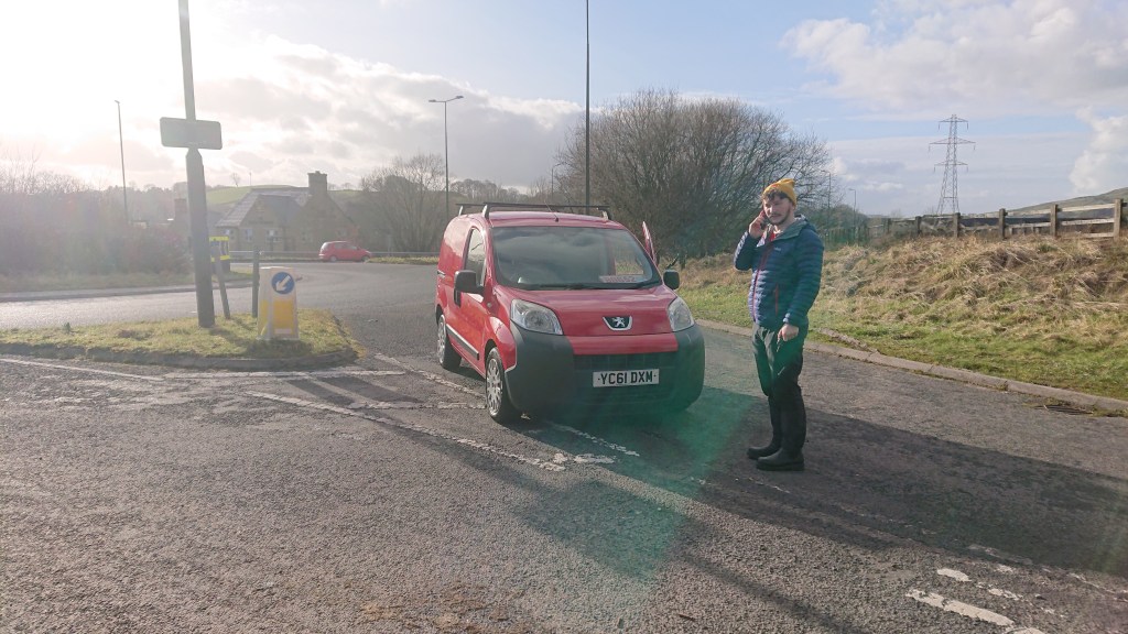 Lesson learned: if a vehicle you wish to test drive needs jump cables to start, it’s probably not worth testing. Postman Pat’s van stalled as we were about to enter the Fickle Mermaid roundabout on the A6 bypass, and guess what, it wouldn’t start.