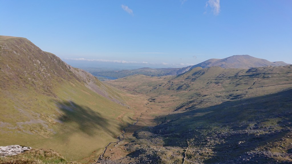 Ahead lay the Rhyd Ddu Path that follows the cliffs around to the right, with a bit of ridge walking in between.
