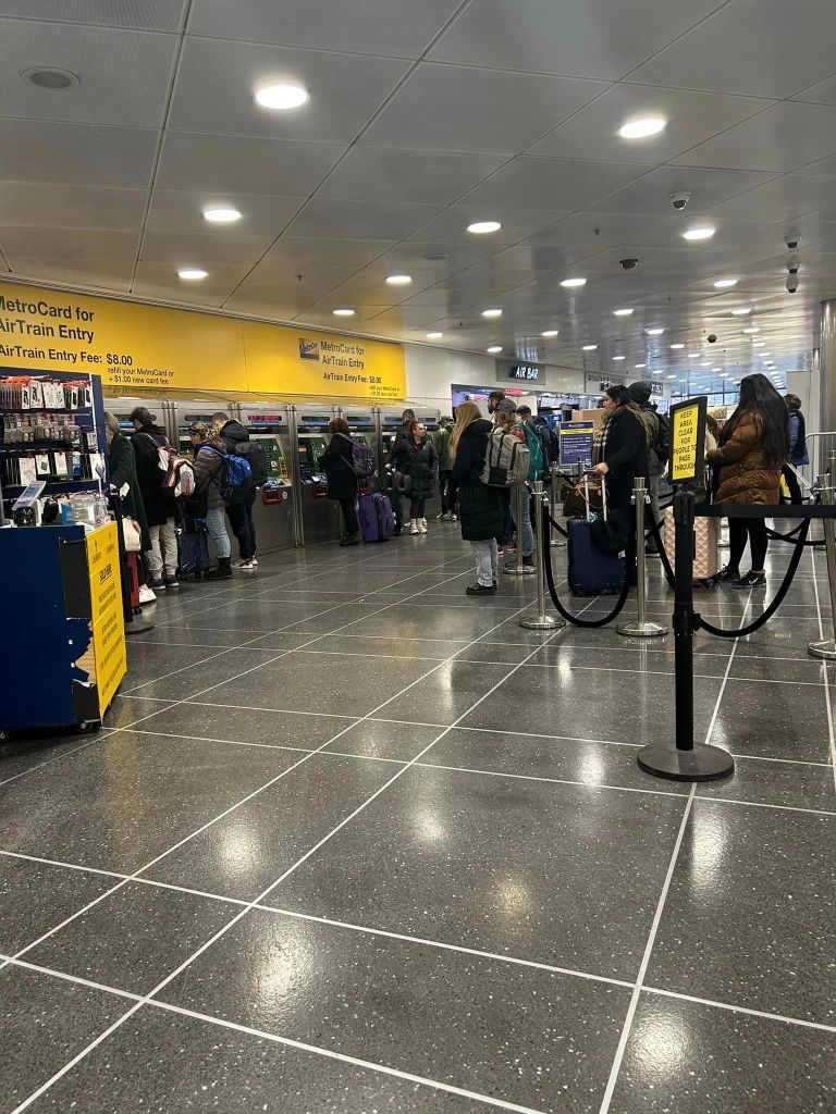 For Times Square, you want to get the AirTrain Jamaica Station – a terminus on the New York City Subway. This trip cost us $8 each and you pay at the end of the journey.