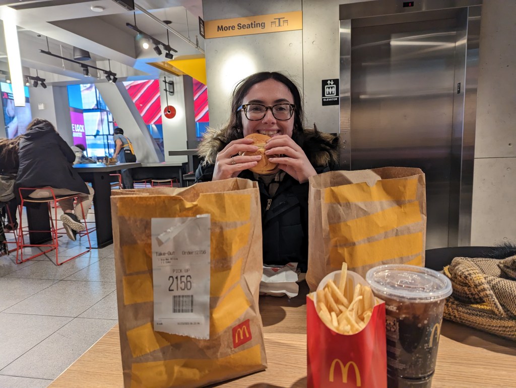 I can confirm that large American Big Mac meal is larger than a large British Big Mac meal. Aimee had a spicy chicken burger which I tried and was very jealous of. Sadly, she managed to finish it all.