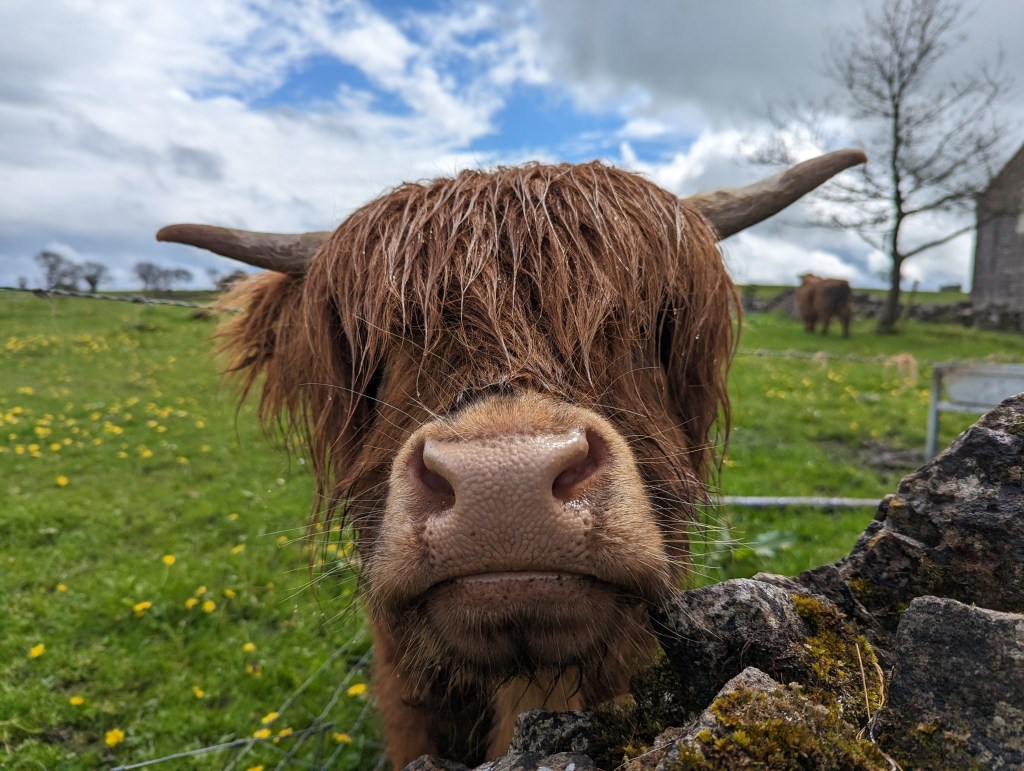 If ever you want to visit Thor’s Cave, you have a choice of parking spots. You can park in Manifold Valley and hike up to the cave, or you can park here at Wetton car park, which features a W/C and inquisitive cows.