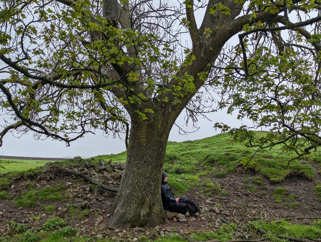 We hid in the trees for a bit, hoping the shower would pass. It didn’t, so we continued on.