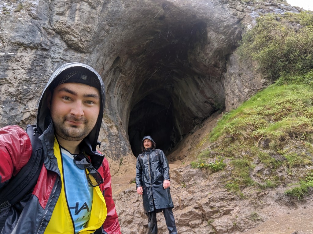 Getting in was tricky as the rock was very slippy. Amazingly there were no falls and we could take a well earned rest inside.
